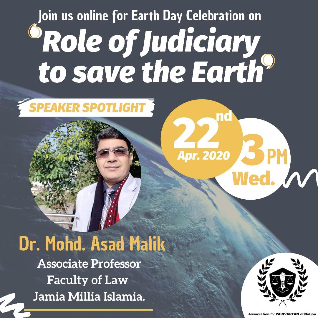 On 22nd April 2020, marking the 50th anniversary of World Earth Day, APNA organised a live virtual session on the theme “The Role of the Judiciary in Saving the World from the Climate Crisis” The event, hosted via Cisco Webex, drew an audience of nearly 60 participants, a diverse mix of students, legal professionals, community workers, and climate activists who actively contributed with thought-provoking questions and reflections.