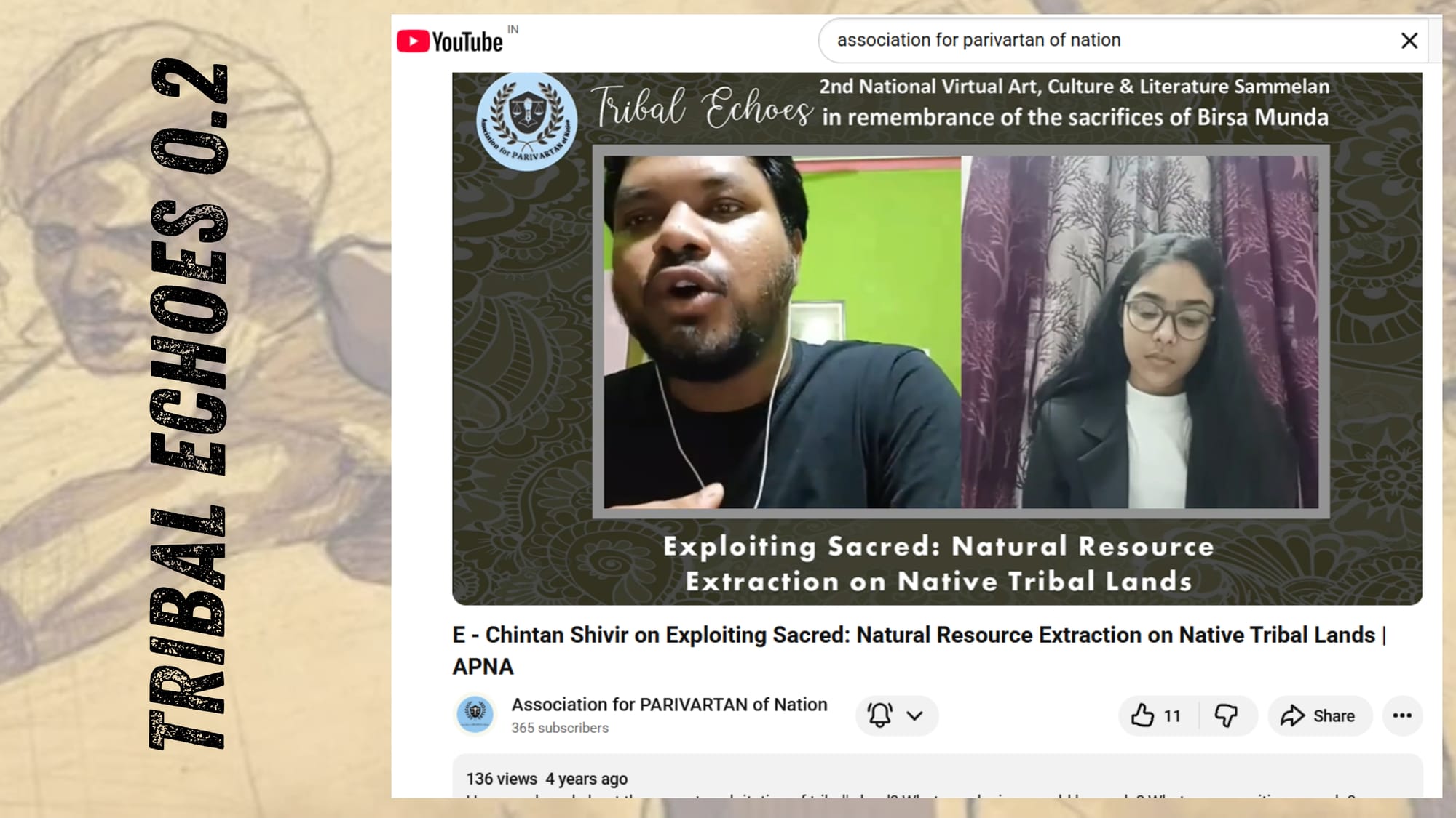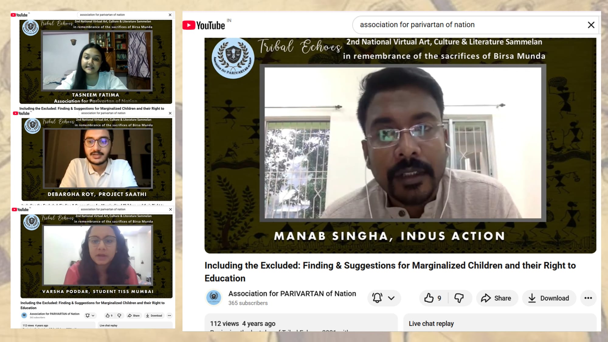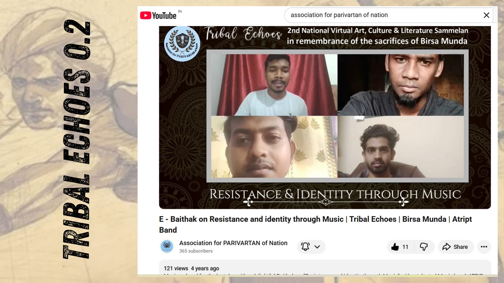 The Tribal Echoes Lecture Series (8–10 June 2021), dedicated to Birsa Munda, brought together activists, scholars, artists and engaged 12933 people on YouTube and Facebook. Sessions on education, caste, violence, extraction, music and storytelling affirmed tribal identity and youth leadership.