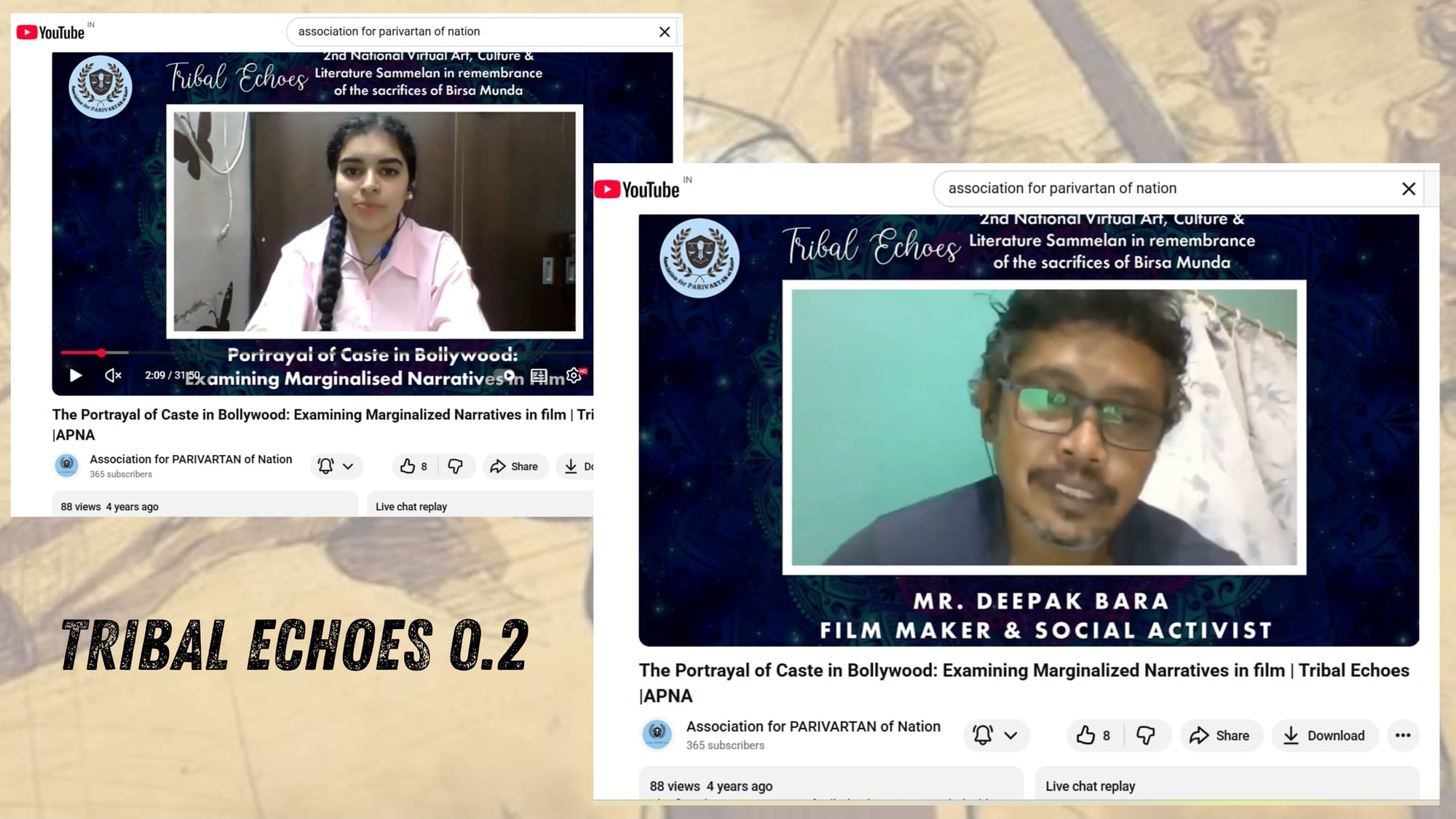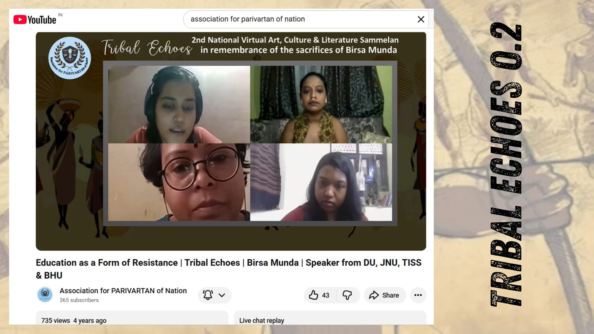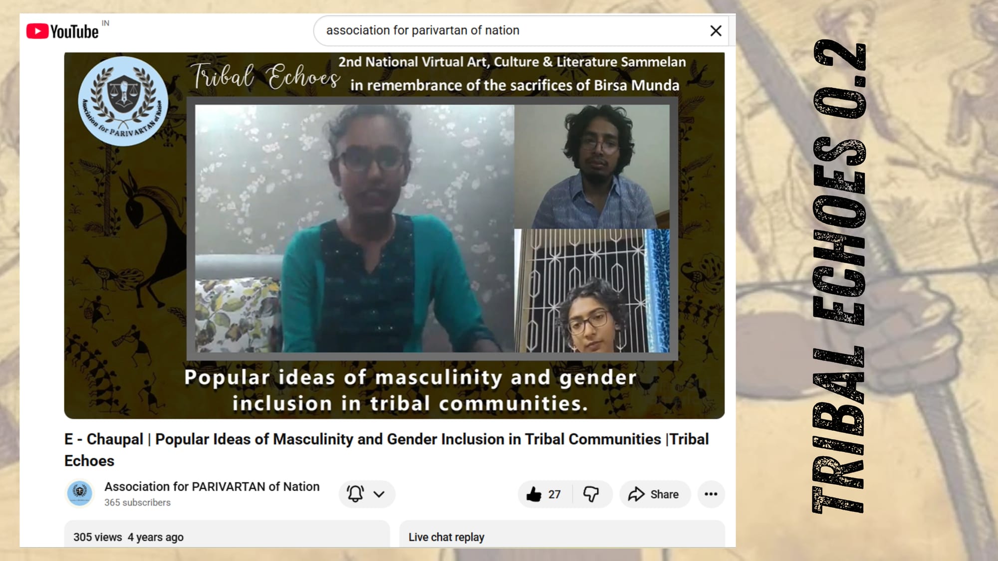 The Tribal Echoes Lecture Series (8–10 June 2021), dedicated to Birsa Munda, brought together activists, scholars, artists and engaged 12933 people on YouTube and Facebook. Sessions on education, caste, violence, extraction, music and storytelling affirmed tribal identity and youth leadership.